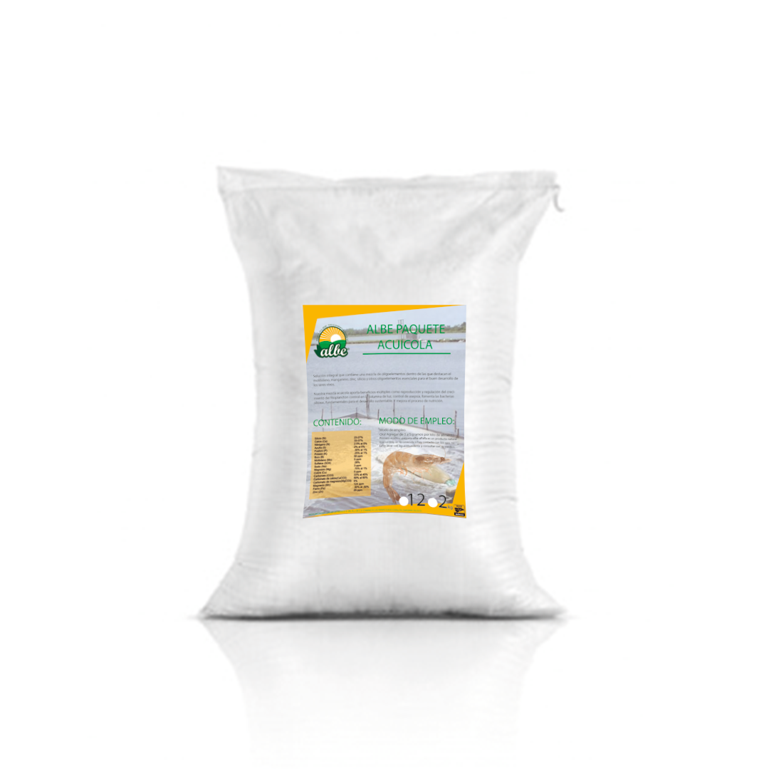 Primero auxilios: paquete Albe Acuícola es un producto natural inocuo. Sólo se recomienda que si hay contacto con los ojos, no tallar, lavar con agua abundante y consultar con su médico.